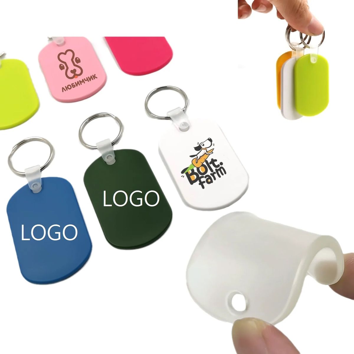 The keychain/dog tag is made of PVC soft rubber, which is durable and flexible. The size is 5.5x3.5 inches. It can be used as a key accessory to keep your keys organized or as a personalized dog tag. Suitable for daily use, outdoor activities, or as a gift. It can be customized with your logo to show your unique style.